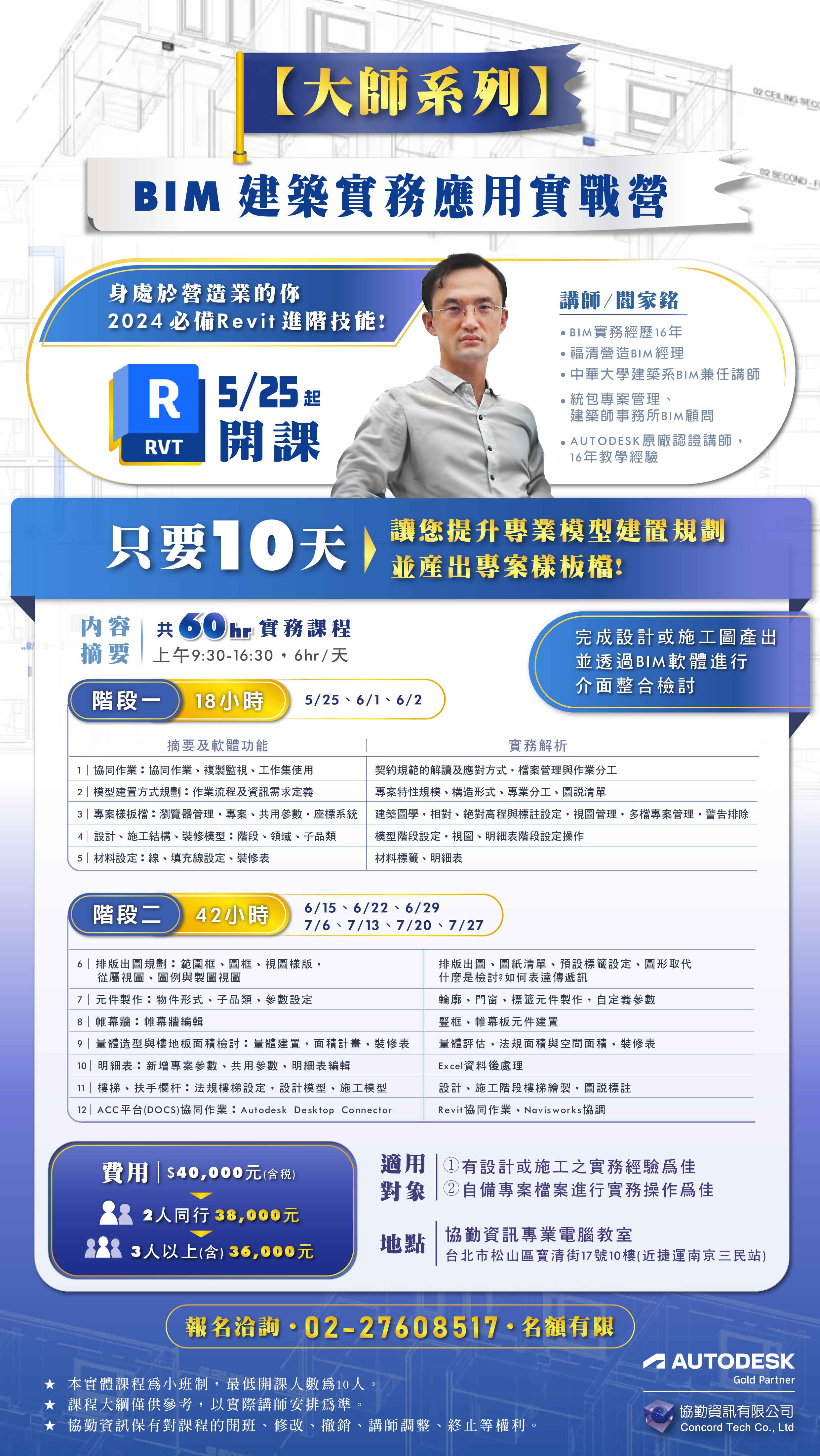 本課程非單純之軟體指令操作課程,歡迎學員自備專案檔案,直接學以致用、現學現賣,讓你的BIM技能更上一層樓,事業更上一層樓!